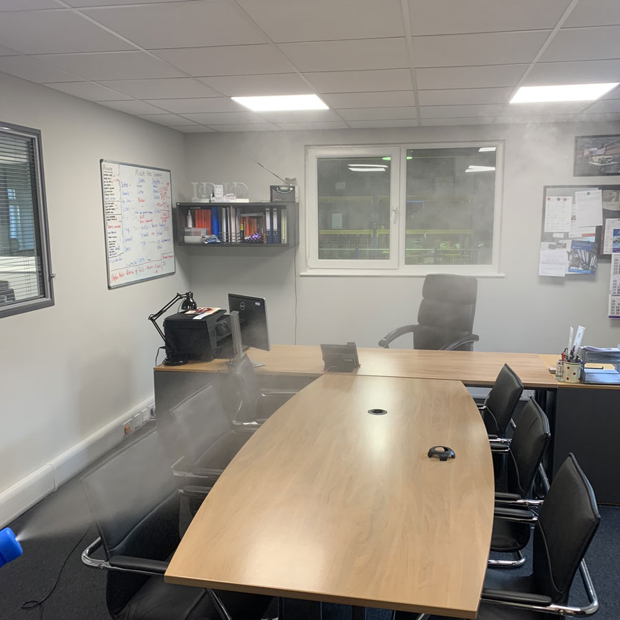 Vaporisation treatment that disperses non-toxic, non-corrosive disinfectant into the air killing 99.9% of known viruses, bacteria and fungi including Coronavirus.